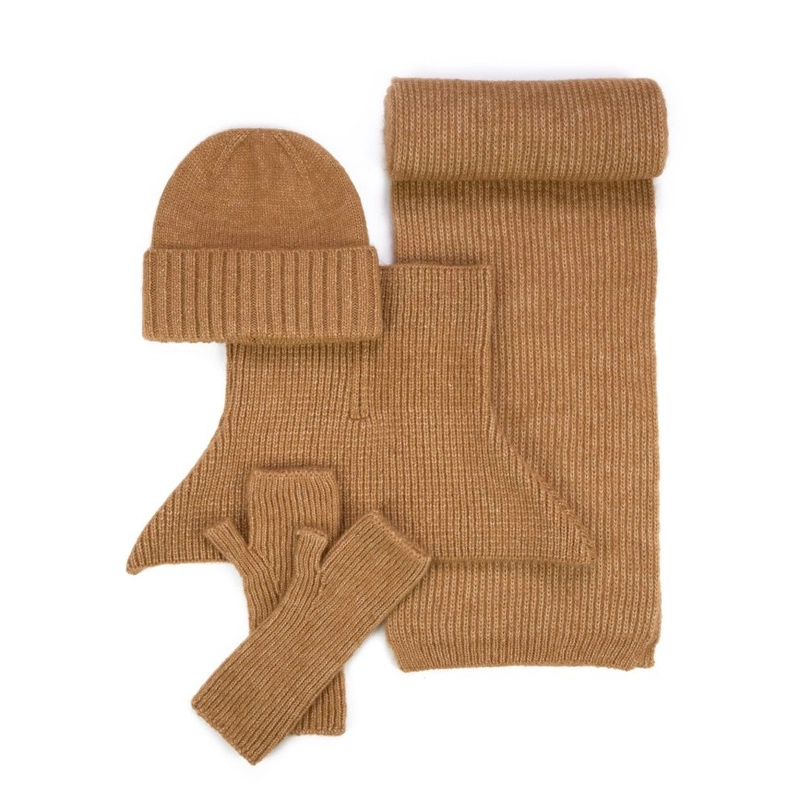 Damski, zimowy komplet składający się z czapki, rękawiczek mitenek, szala i bolerka z golfem.