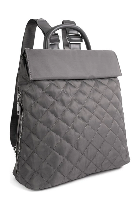 Srebrne wykończenia i pikowanie nadają mu nieco eleganckiego charakteru.