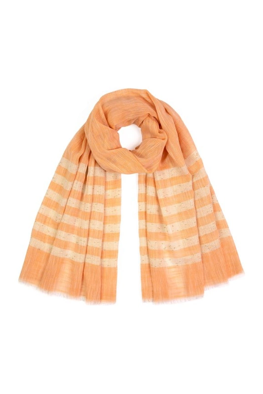 Cienki, przewiewny, elegancki szal zakończony subtelnymi frędzelkami.