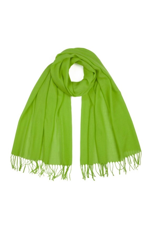 Minimalistyczny, cienki szal o prostym kroju, wykończony frędzlami.