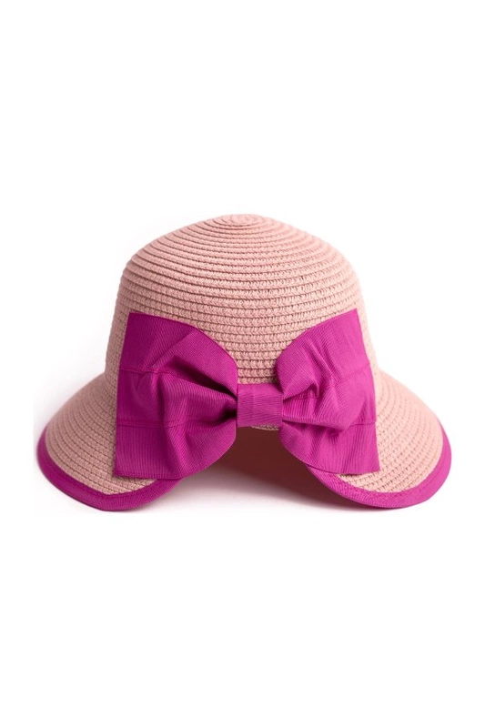 Uroczy kapelusz dla dziewczynki typu rondelek z ozdobną kokardą.
