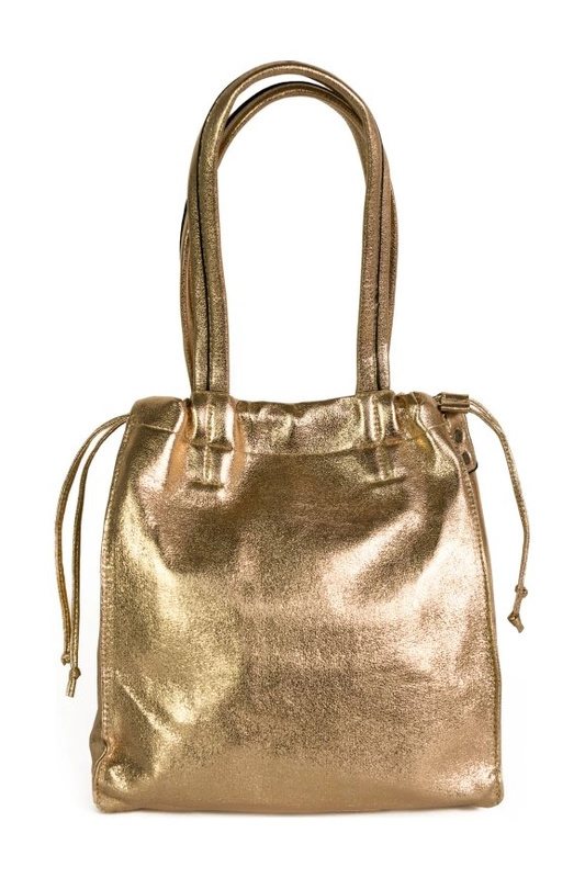 Miejska, metaliczna torba typu shopperka wykonana z eko skóry.