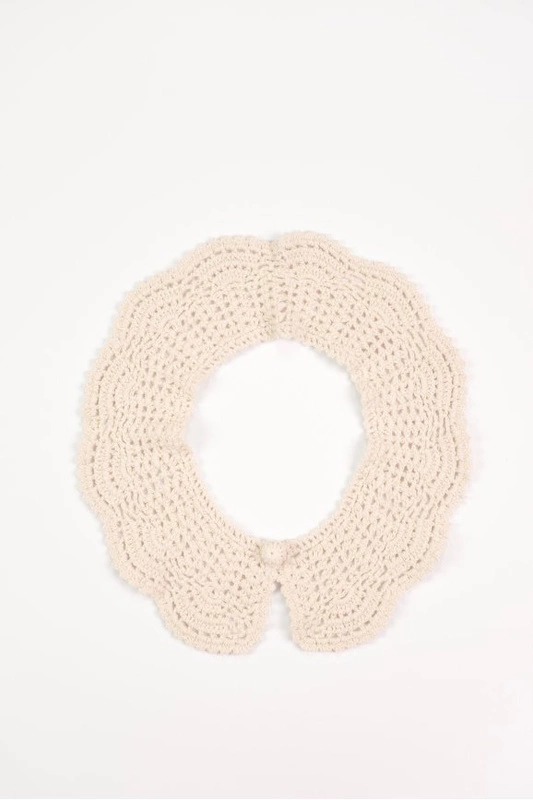 Dziergany kołnierzyk o delikatnym, ażurowym splocie to subtelny dodatek do każdej stylizacji.