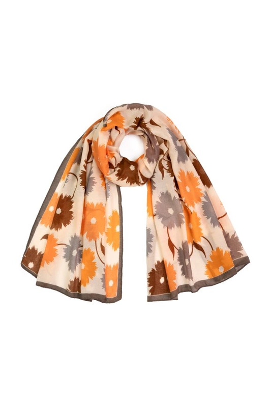 Lekki damski szal z subtelnym florystycznym motywem to delikatny i elegancki dodatek na pory przejściowe.