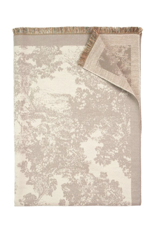 Stonowana kolorystyka w połączeniu z delikatnymi frędzelkami nadaje mu subtelnej elegancji i ponadczasowego uroku.