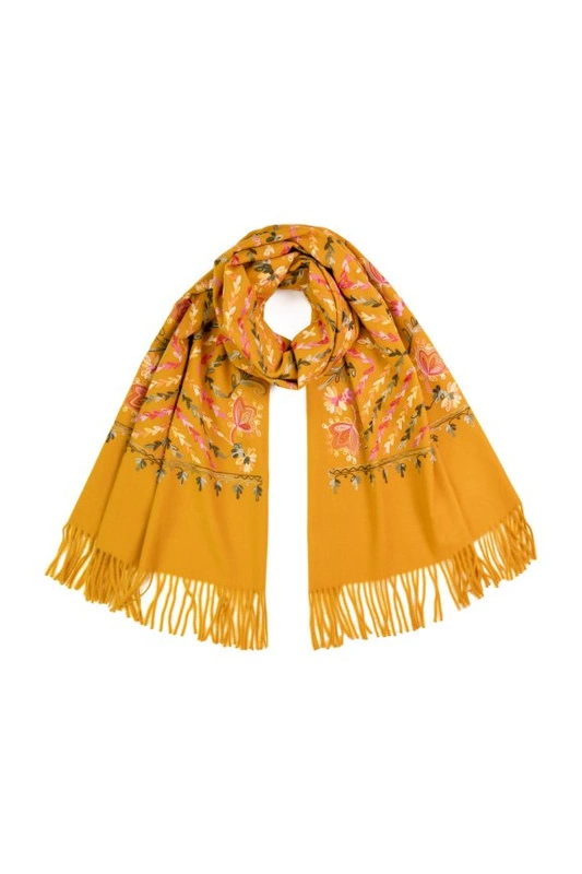 Duży szal zdobiony kolorowym kwiatowo-orientalnym haftem.
