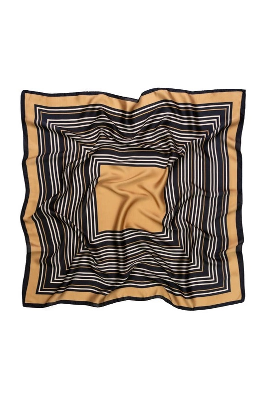 Kwadratowa satynowa apaszka w dwukolorowe paski to klasyczny i elegancki dodatek, który zachwyca prostotą.