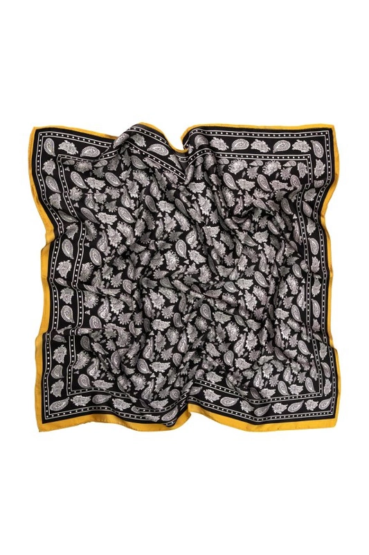 Kwadratowa apaszka z satyny z motywem paisley to elegancki i kolorowy dodatek, który doda charakteru każdej stylizacji.