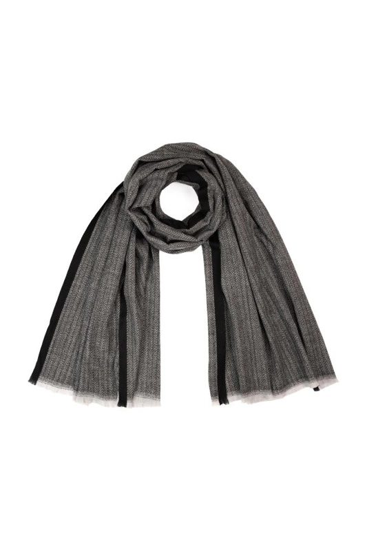 Stonowana kolorystyka i subtelne frędzelki na końcach sprawiają, że szalik prezentuje się stylowo i ponadczasowo.