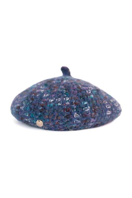 Wykonany z dodatkiem wełny, zachwyca przyjemną fakturą w stylu bouclé i miękką, wyprofilowaną formą, dzięki której łatwo go ułożyć na głowie.