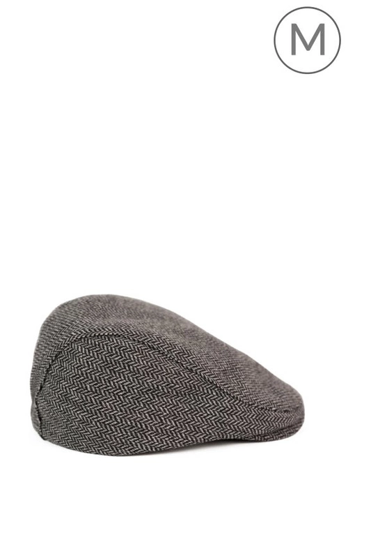 Klasyczny męski kaszkiet w ponadczasowy wzór jodełki, który doskonale uzupełni każdą garderobę.