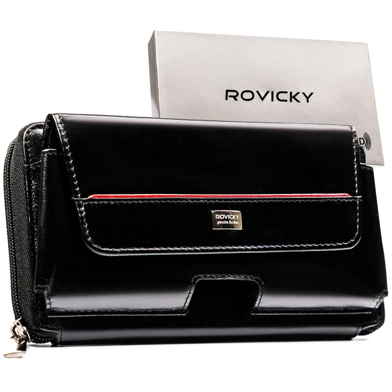 Skórzana, czarna saszetka męska z systemem RFID - Rovicky