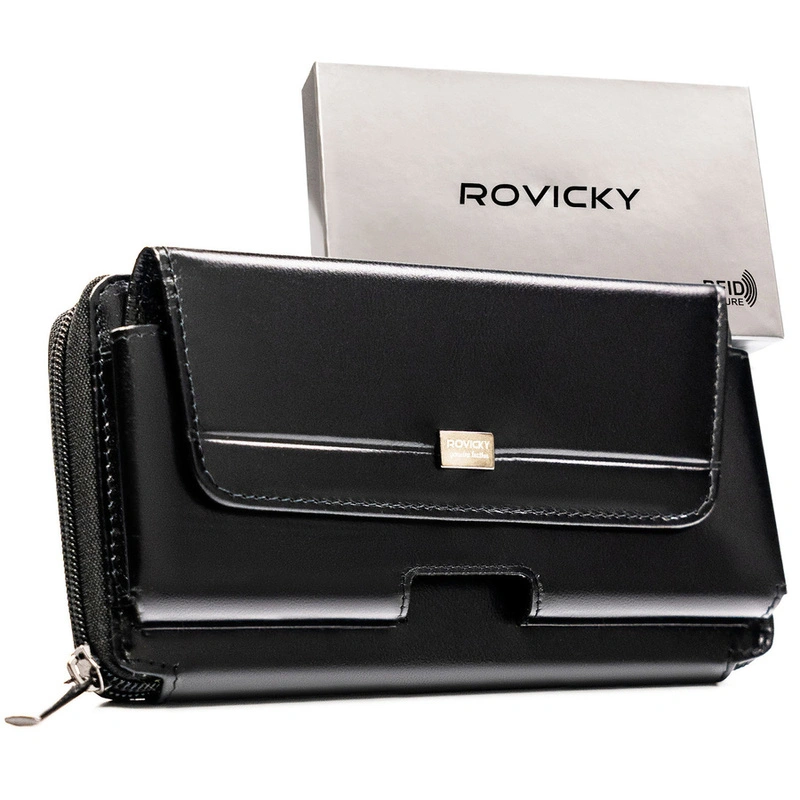 Skórzana, dwukomorowa, czarna saszetka męska z systemem RFID - Rovicky