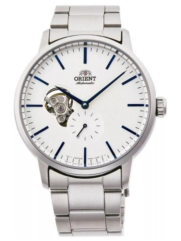 Model Orient Open Heart Automatic RA-AR0102S10B posiada srebrną bransoletę oraz srebrną kopertę, wykonaną z wysokiej jakości stali nierdzewnej. Klasa wodoszczelności czasomierza to WR50, co gwarantuje szczelność zegarka w przypadku drobnych zachlapań.