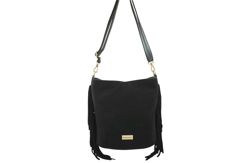 Zamszowa torebka boho z frędzlami - Czarna