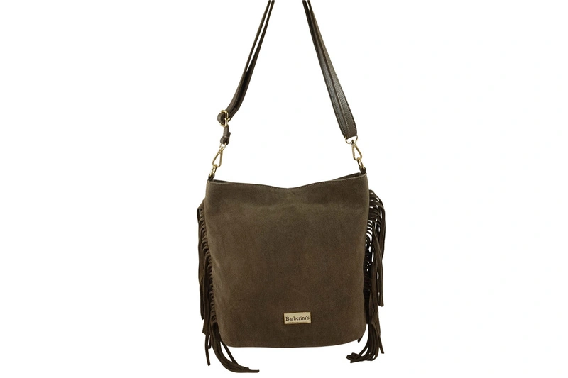 Zamszowa torebka boho z frędzlami w kolorze ciemnego beżu została wykonana ze skóry naturalnej to stylowa propozycja dla kobiet ceniących naturalne materiały, wygodę i ponadczasowy design. Wykonana z wysokiej jakości skóry zamszowej, uzupełniona subtelnymi elementami ze skóry licowej, zachwyca miękką formą i dopracowanymi detalami. Modna zamszowa torebka boho z frędzlami doskonale sprawdzi się jako model codzienny, do pracy, na spotkania czy zakupy w mieście. Świetnie komponuje się z jeansami, swetrami i skórzanymi botkami, zwiewnymi sukienkami i kozakami, lnianymi koszulami, marynarkami i stylizacjami w stylu casual chic. Naturalna kolorystyka i połączenie zamszu ze skórą licową sprawiają, że torebka pasuje zarówno do stylu boho, miejskiego, jak i eleganckiej codzienności. To uniwersalny dodatek, który podkreśli charakter stylizacji i doda jej wyrafinowania.