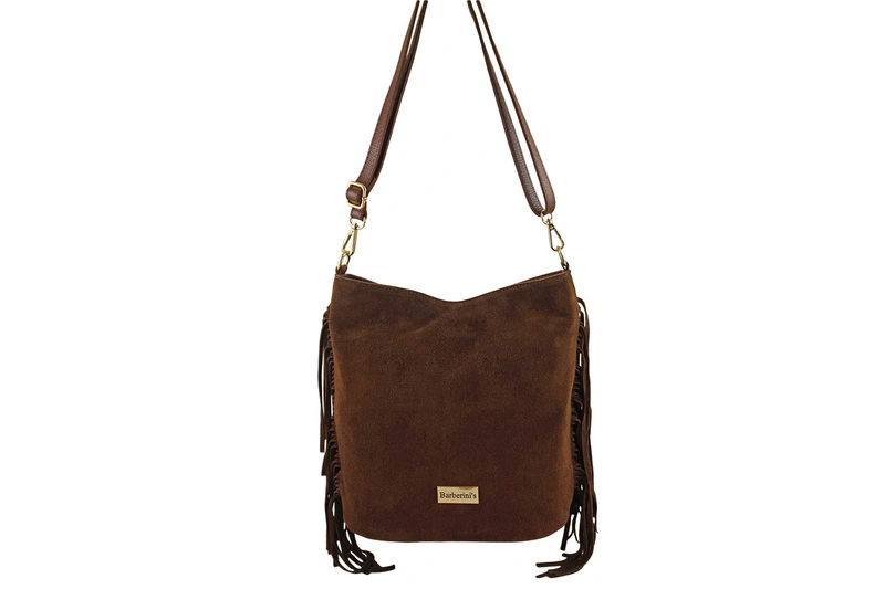 Zamszowa torebka boho z frędzlami - Brązowa