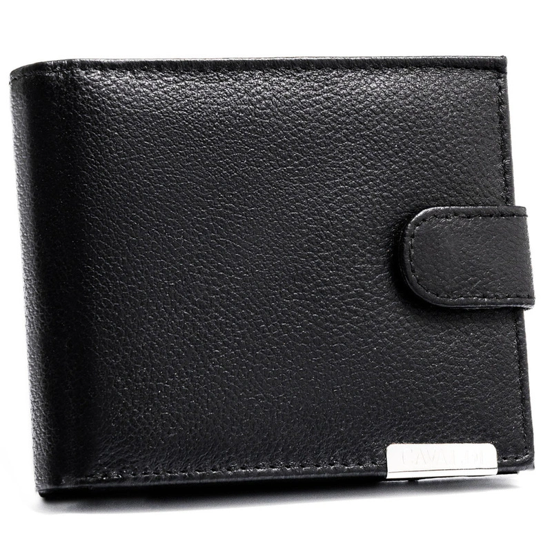 Duży portfel męski ze skóry naturalnej w czarnym kolorze zamykany zatrzaskiem - 4U Cavaldi