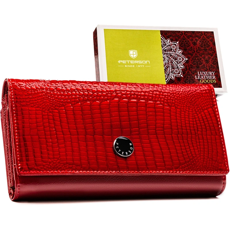 Duży portfel damski ze skóry naturalnej w czerwonym kolorze zamykany na zatrzask - Peterson