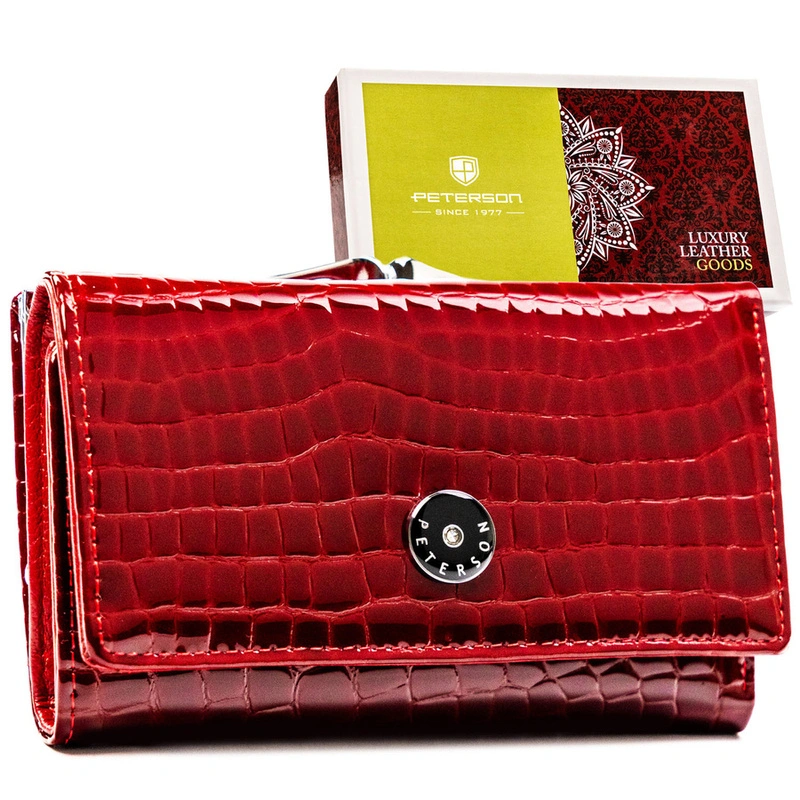 Czerwony portfel damski ze skóry naturalnej zamykany na zatrzask i bigiel - Peterson