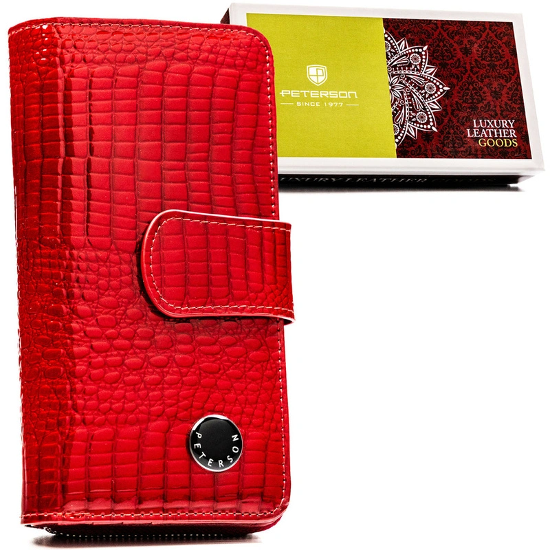 Duży, czerwony portfel damski ze skóry naturalnej zamykany na suwak i zatrzask - Peterson