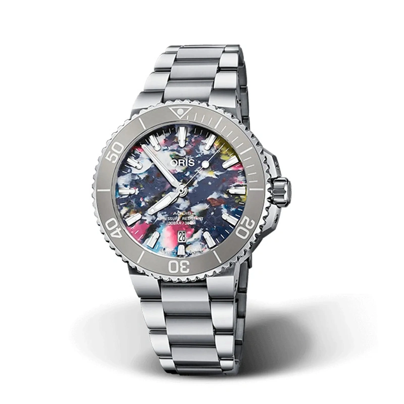 AQUIS DATE - CRISTAL ZAFIRO ABOMBADO A AMBOS LADOS CON CAPA INTERIOR ANTIREFLEJOS -AGUJAS CON TRATAMIENTO SUPERLUMINOVA ESFERA ELABORADA CON PLASTICOS RECICLADOS 01 733 7766 4150-SET