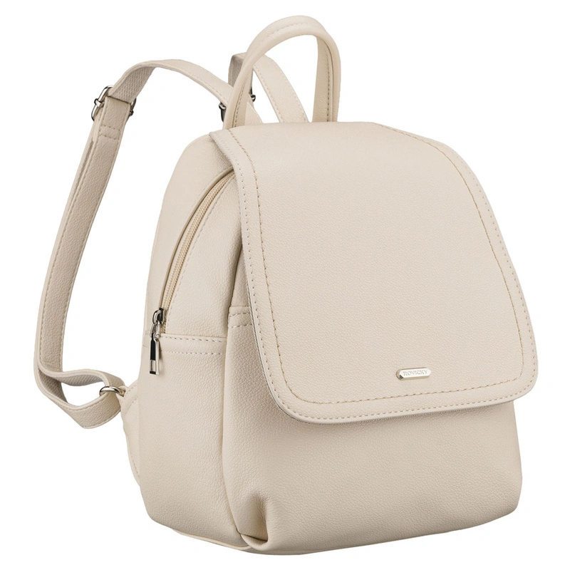 Miejski plecak damski ze skóry ekologicznej w jasnobeżowym kolorze - Rovicky