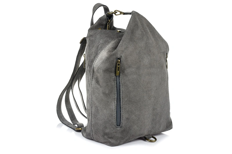 Szary Włoski Stylowy Plecak Damski Skórzany Zamsz A4 W14