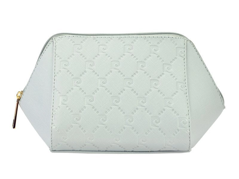 - Kosmetyczka podróżna od Pierre Cardin to doskonałe połączenie funkcjonalności i elegancji. Wykonana z trwałego poliestru, cechuje się nowoczesnym designem z logowanym wzorem oraz złotymi detalami, które nadają całości luksusowego charakteru.