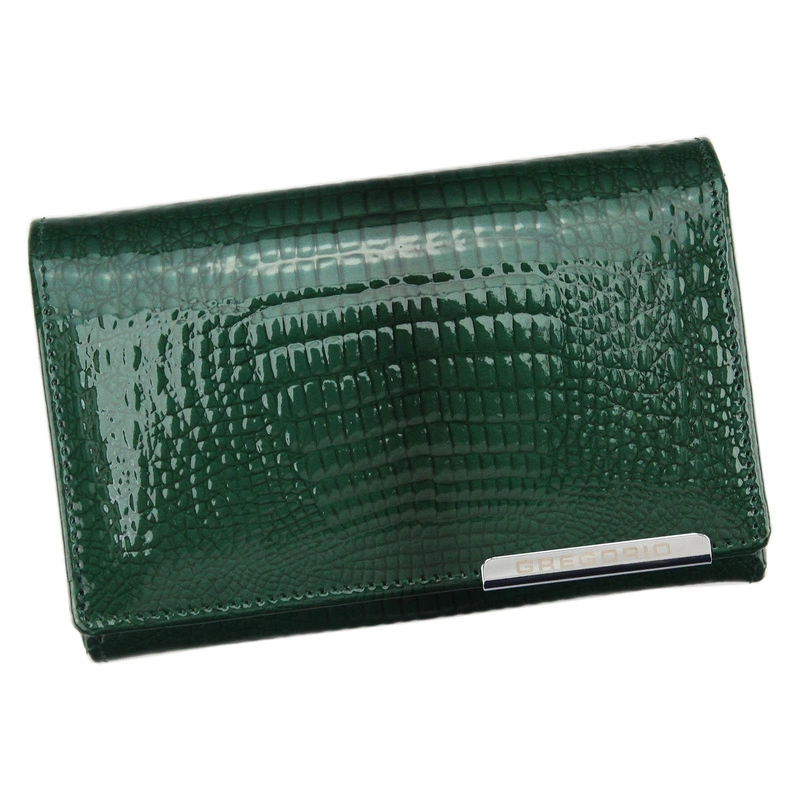 - Stylowy portfel, idealny dla kobiet z klasą. Wyjątkowa, lakierowana faktura z motywem skóry węża, krokodyla. Dodatkowo widoczne jest logo producenta Gregorio, na ozdobnej blaszce. Wzorowe wykonanie ze skóry naturalnej, która podkreśla piękny charakter.