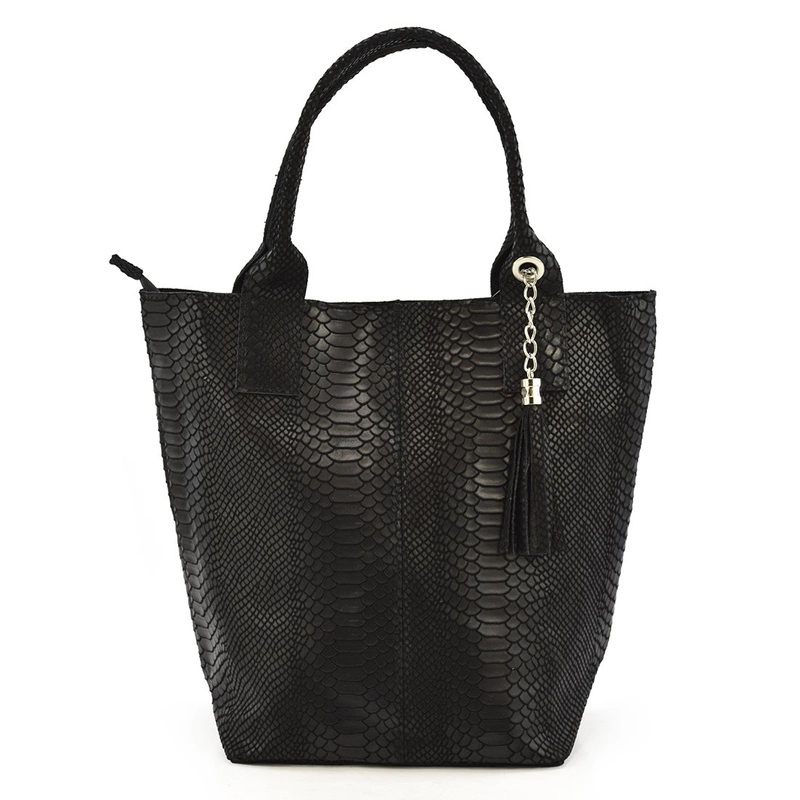 - Torebka produkcji włoskiej, pojemna, wygodna, mieszcząca format A4. Wykonana jest ona z bardzo miękkiej, naturalnej skóry, najwyższej jakości, o ciekawej strukturze - imitacja skóry węża. Będzie na pewno świetnym dodatkiem do każdej Twojej stylizacji.