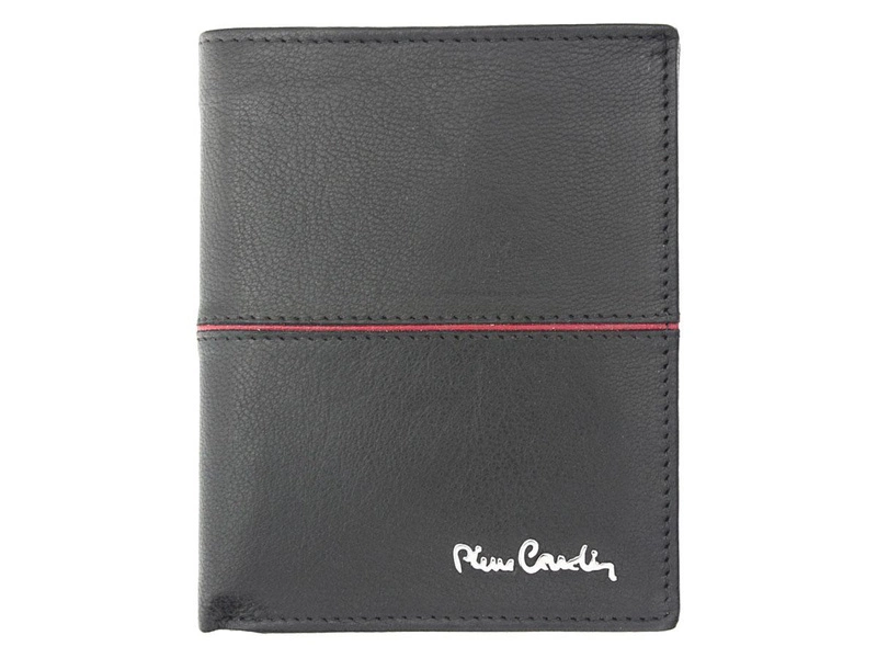 Wyprodukowany z wysokogatunkowej skóry naturalnej, miękkiej w dotyku. Rozbudowany fason w pionowym układzie, bez wzoru. Na fakturze umieszczone zostało logo producenta Pierre Cardin. Model zapakowany w oryginalne, logowane pudełko.