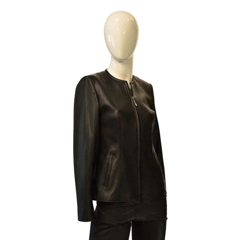 Opinie o Zapinana klasyczna damska Skórzana kurtka "Aneta" z ozdobną plisą Bukowski