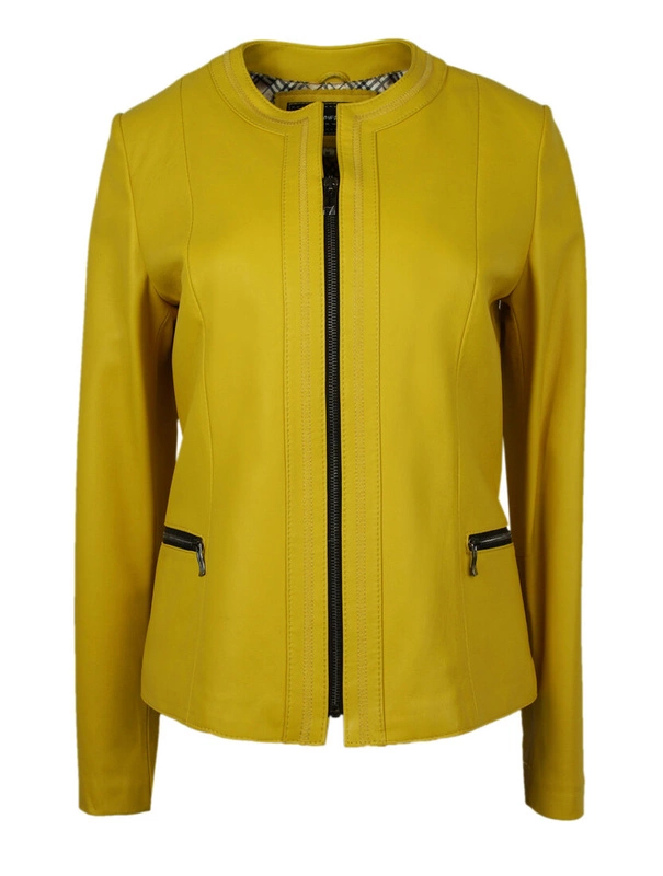 Opinie o Zapinana klasyczna damska Skórzana kurtka "Aneta" z ozdobną plisą Bukowski