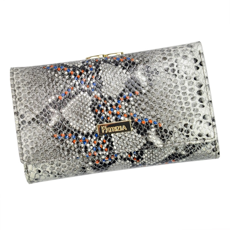 - Portfel marki Patrizia to doskonałe połączenie klasycznej elegancji i wyrazistego designu. Wykonany z wysokiej jakości naturalnej skóry z tłoczeniem przypominającym skórę węża, przyciąga uwagę subtelnym połyskiem i starannym wykończeniem.