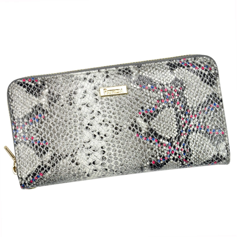 Portfel damski marki Patrizia to idealna propozycja dla kobiet, które cenią połączenie modnego wyglądu z praktycznym wnętrzem. Wykonany z wysokiej jakości naturalnej skóry, przyciąga uwagę stylowym wzorem przypominającym skórę węża. To duży model o poziomej orientacji, który bez problemu zmieści dowód rejestracyjny oraz wszystkie niezbędne dokumenty.