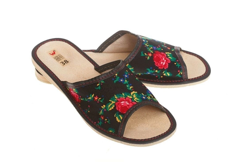 Wygodne damskie niskie kapcie z motywem góralskim kwiatowym Wójciak Podhale