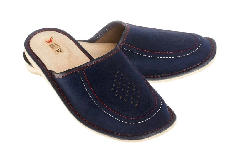 Opinie o Kapcie męskie wygodne pantofle ze skóry naturalnej klapki domowe pw265 granatowy