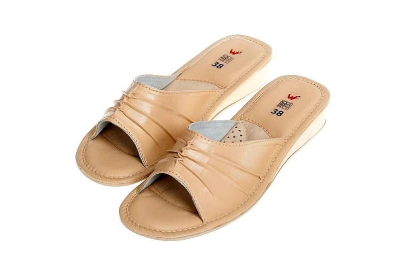 Damskie pantofle wykonane ze skóry naturalnej , dzięki temu możesz mieć pewność że są najwyższej jakości. Wsuwane na delikatnym 3,5cm klinie w modnej klasycznej kolorystyce.