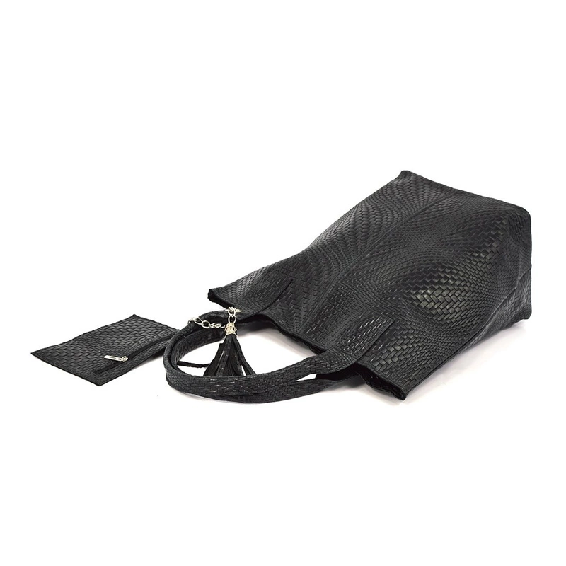 • Zmysłowa i wyjątkowa torebka w fasonie shopperbag lub worka, wykonana ze skóry naturalnej, o przeplatanej fakturze. Model, który z łatwością pomieści format A4. Charakterystyczny wzór doda Tobie elegancji, niezależnie od okazji.