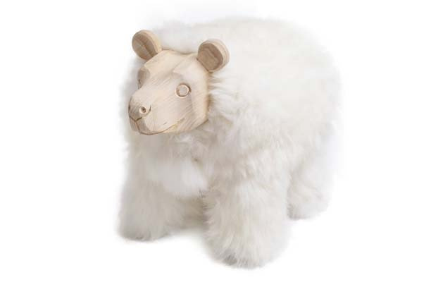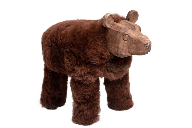 Drewniane niedźwiadki zostały wykonane z najwyższej jakości drewna lipowego i świerkowego, są obite gąbką tapicerską oraz różno-barwną naturalną skórą owczą.