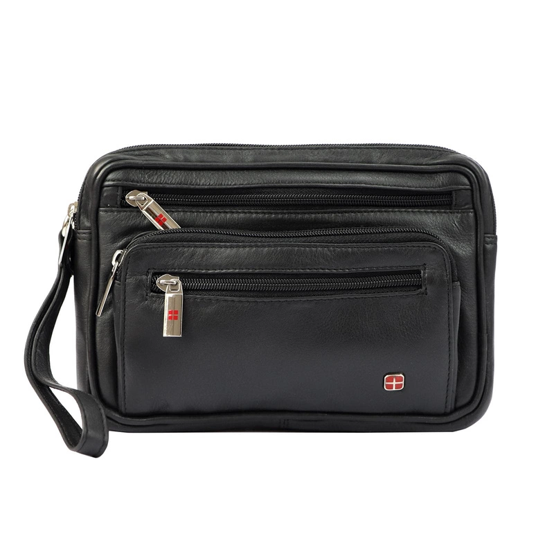 Męska saszetka ze skóry naturalnej do ręki z kieszeniami marki Albatross
