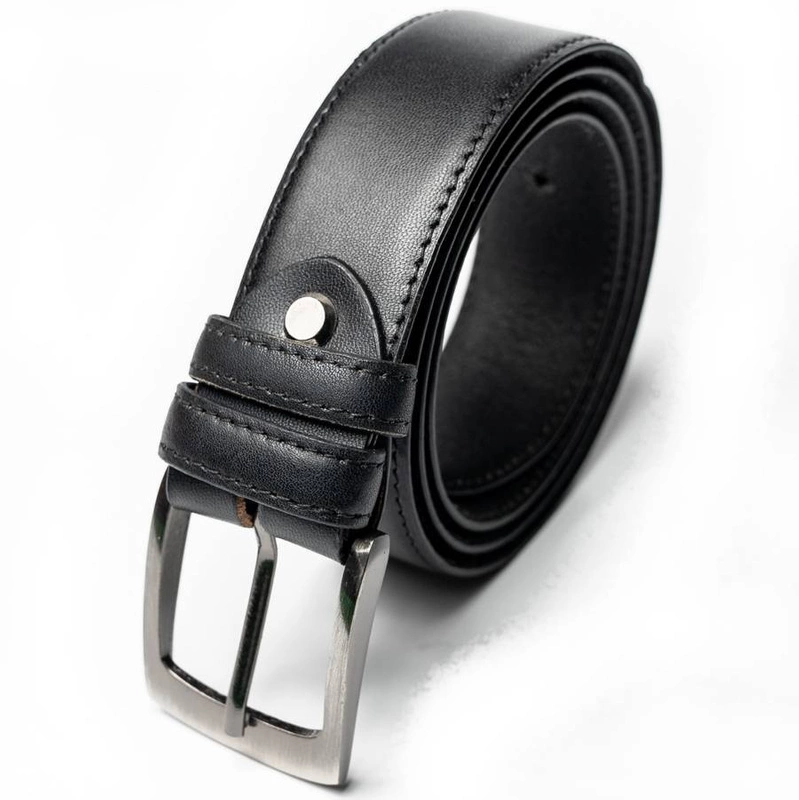 Nowoczesny, oryginalny pasek wykonany z wysokiej jakości skóry naturalnej w kolorze czarnym, z klasyczną prostą metalową klamrą. Ciekawy styl urozmaici każdą stylizację.