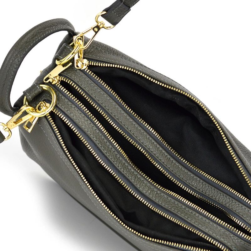 Na zewnątrz torebka posiada dwie kieszonki, które z łatwością pomieszczą wszystkie drobiazgi jak klucze, czy podręczne kosmetyki do poprawy makijażu w ciągu dnia. Dodatkowo model ten jest trzykomorowy i wszystko zamykane jest na zamek błyskawiczny. Torebka wyposażona jest w regulowany pasek, aby codzienne funkcjonowanie stało się bardziej przyjemne.