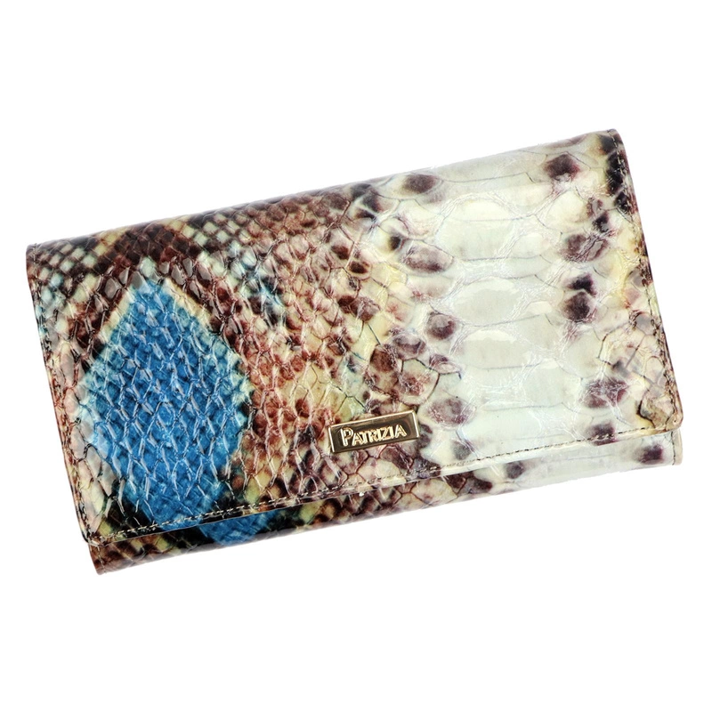 Wyjątkowy damski portfel o charakterystycznym i niepowtarzalnym wzorze typu skóra węża, krokodyla, który dodaje stylu. Wyprodukowany przez markę Patrizia z najlepszej jakości skóry naturalnej, odpornej na wszelkiego rodzaju otarcia i zadrapania. Całość podkreślają złote zdobienia.