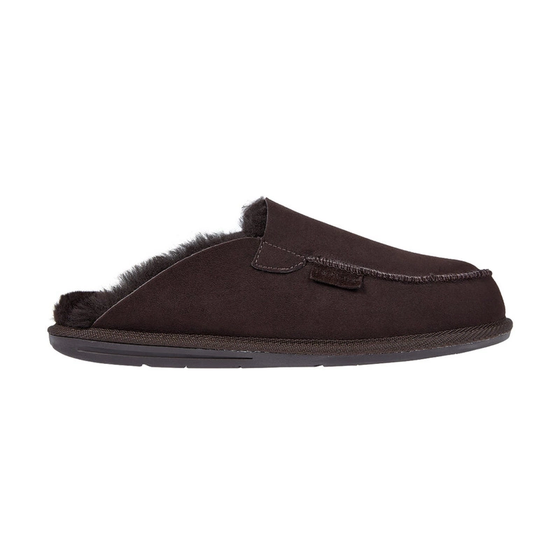 Ten model pantofli szczególnie dobrze sprawdzi się u mężczyzn z szeroką stopą. Wsuwany krój zbliżony do klasycznych mokasynów sprawia, że wygodnie się je wkłada, a kapcie nie spadają ze stóp podczas chodzenia. Elegancki, mocny szew stanowi dodatkowy element dekoracyjny.