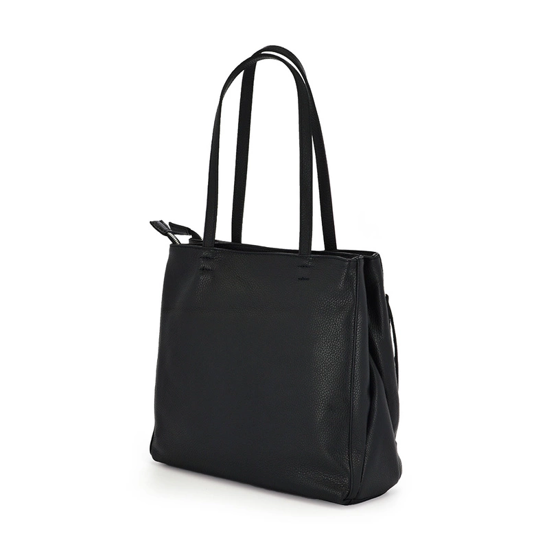 Torba zamykana na suwak, posiada podszewkę materiałową wewnątrz, co zwiększa jej wytrzymałość i chroni przechowywane przedmioty. Wykończenie zewnętrzne z groszkowanej skóry naturalnej nadaje jej elegancki wygląd, jednocześnie zapewniając ochronę przed codziennym zużyciem.