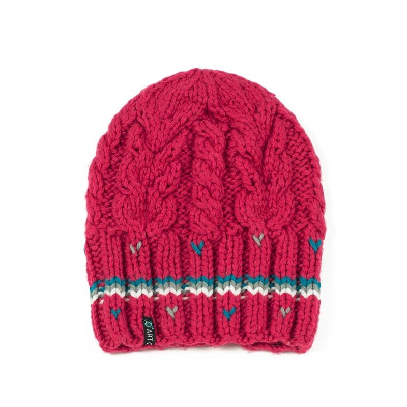 Ciepła czapka wykończona warkoczem. Na czubku ma pompon.