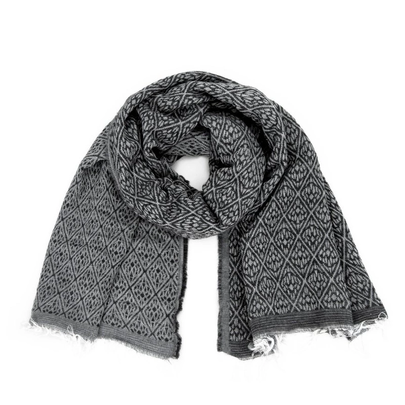 W dotyku wyczuwalna jest specyficzna faktura materiału, która nadaje szalowi niepowtarzalny charakter.