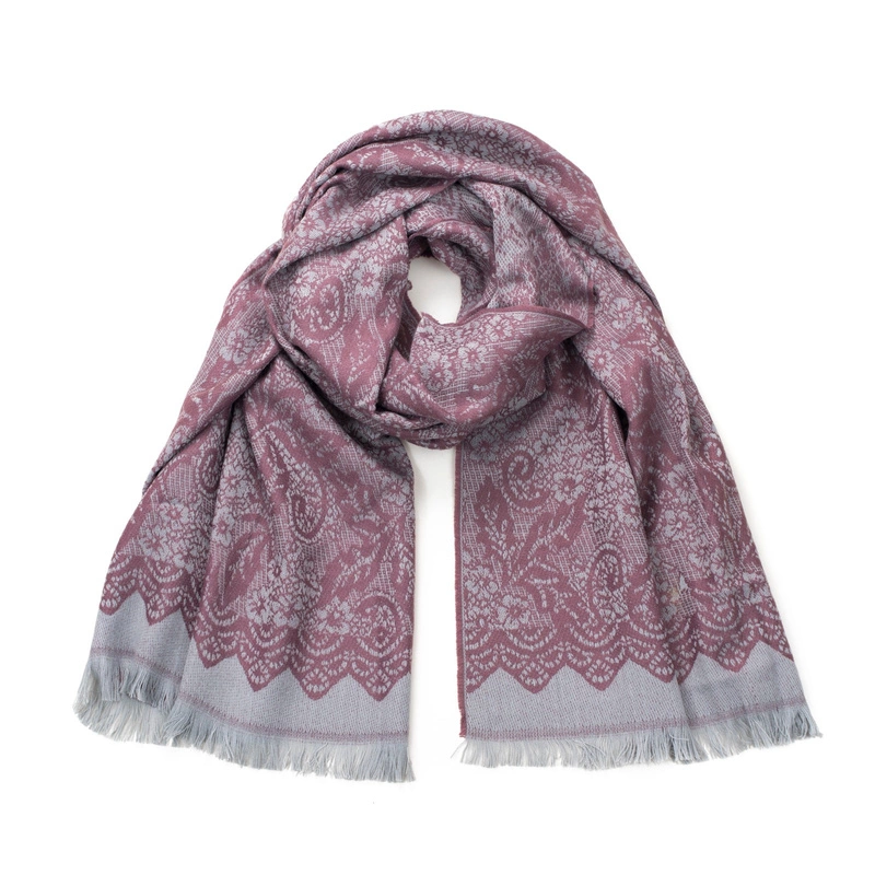 Duża, miękka chusta zakończona postrzępionymi bokami.